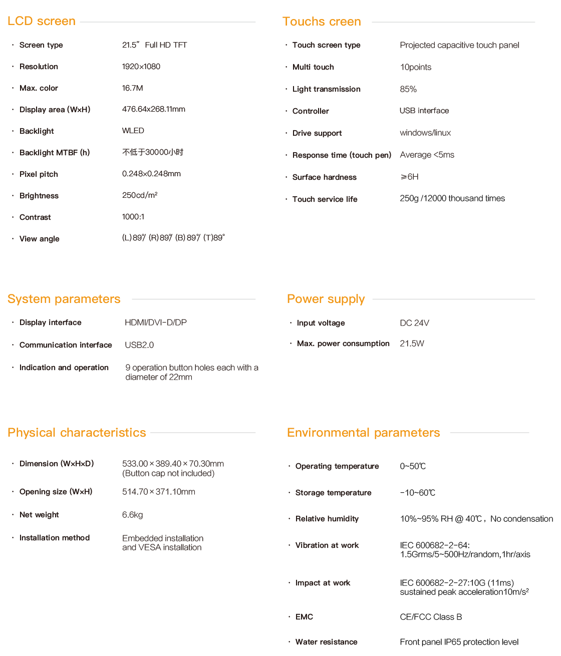 Product > PD series embedded industrial touch panel > 21.5-Inch Industrial Touch Panel > PD-8721