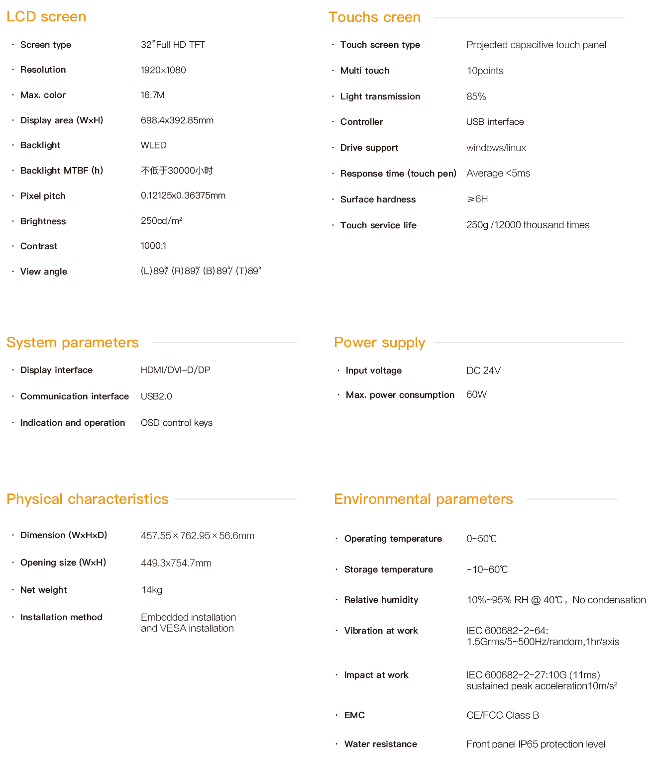 Product > PD series embedded industrial touch panel > 32-Inch Industrial Touch Panel > PD-8832