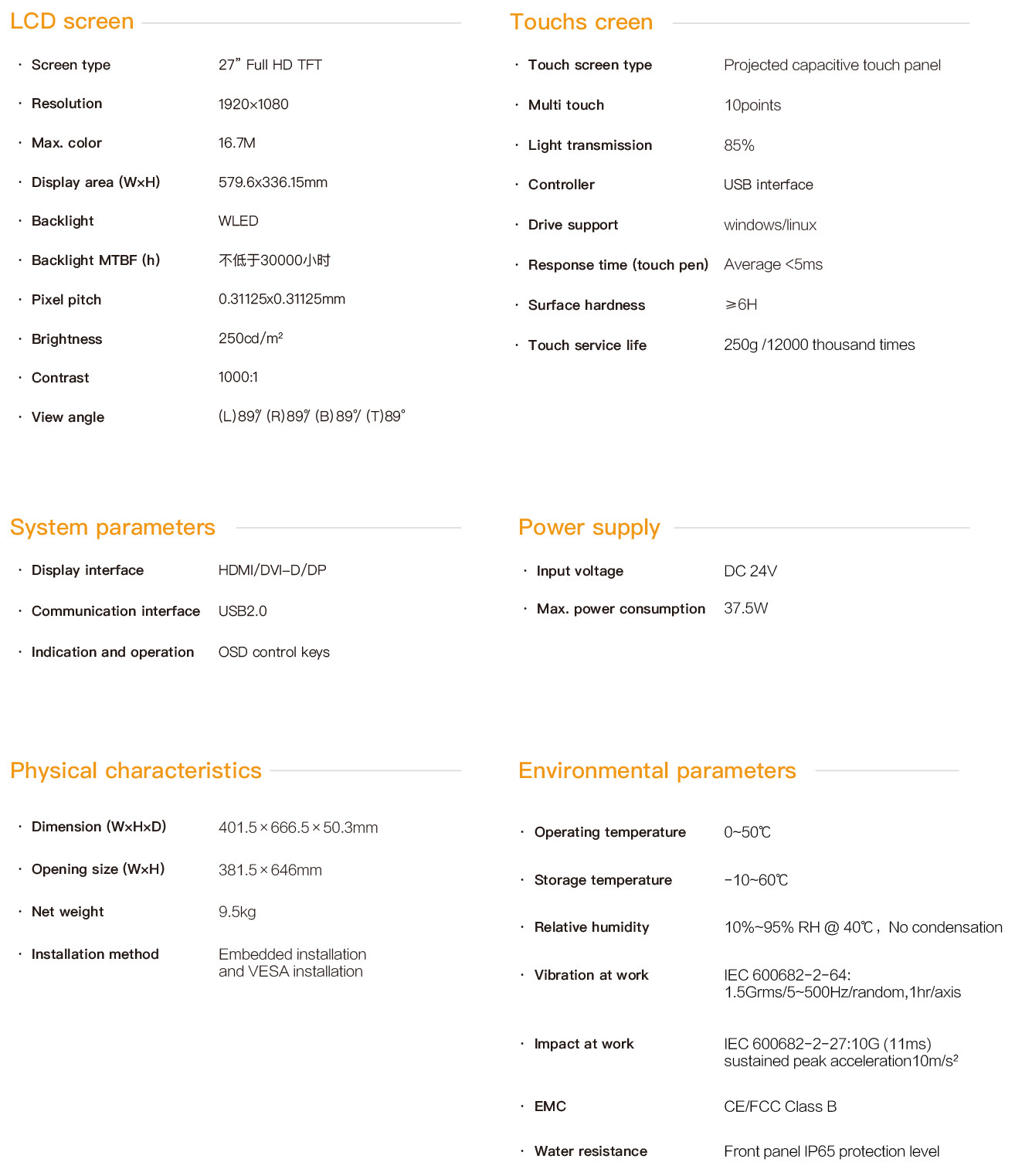 Product > PD series embedded industrial touch panel > 27 Inch Industrial Touch Panel > PD-8827