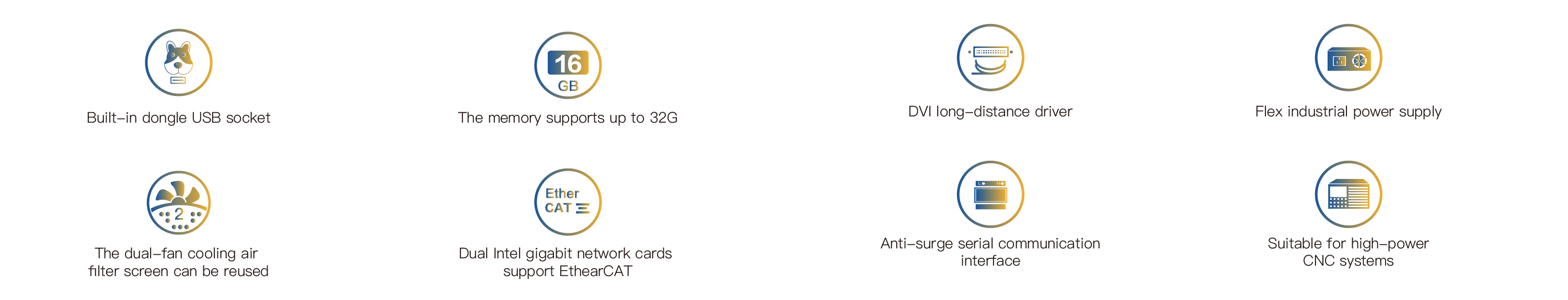 The IPC-2101 industrial control computer uses the 4th generation Intel? high-performance CoreTM i3/i5/i7 desktop CPU. Dual-fan positive air pressure dust-proof design, all-steel desktop or wall-mounted case. It supports 1 PCI bus expansion slot and 2 PCIe bus expansion slots, with good compatibility and the ability to expand various industrial control cards. It features 2 gigabit Ethernet ports and supports industrial real-time buses such as EtherCAT. It features multiple USB2.0/3.0 interfaces, including one built-in USB2.0 encryption dog interface and one built-in miniPCIe interface for expanding WIFI/4G. The panel interface has VGA/DVI/HDMI display interfaces. Among them, the DVI interface supports long cable driving, which is convenient for equipment layout and operation. The whole machine is designed with EMC electromagnetic compatibility to ensure stable operation in a strong electromagnetic environment. The operating system supports Windows7, Windows10 and Linux. It has CE certification and CB certification, meeting the export requirements of the European Union.