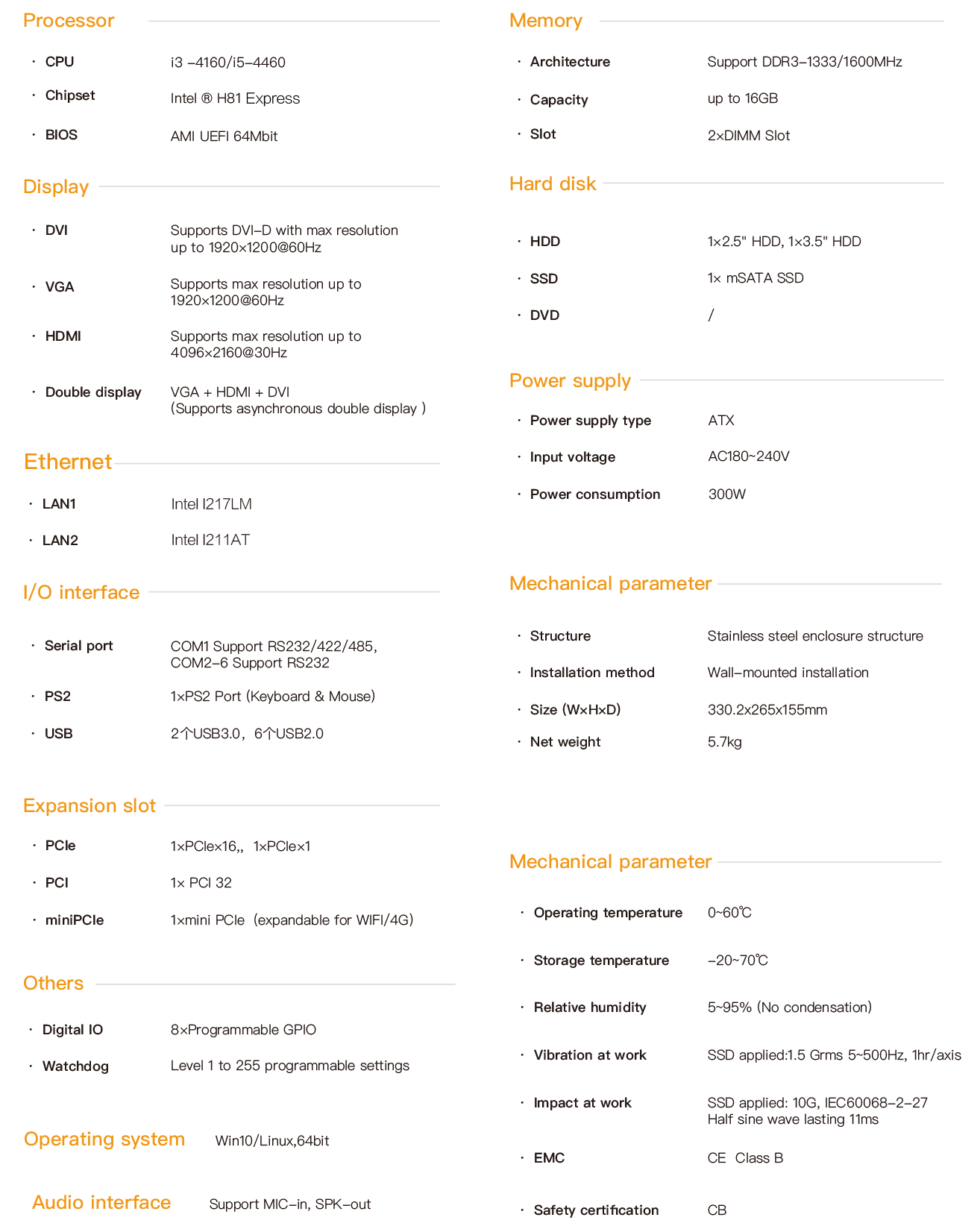 Product detailed specifications(IPC-2101 Industrial Computer)