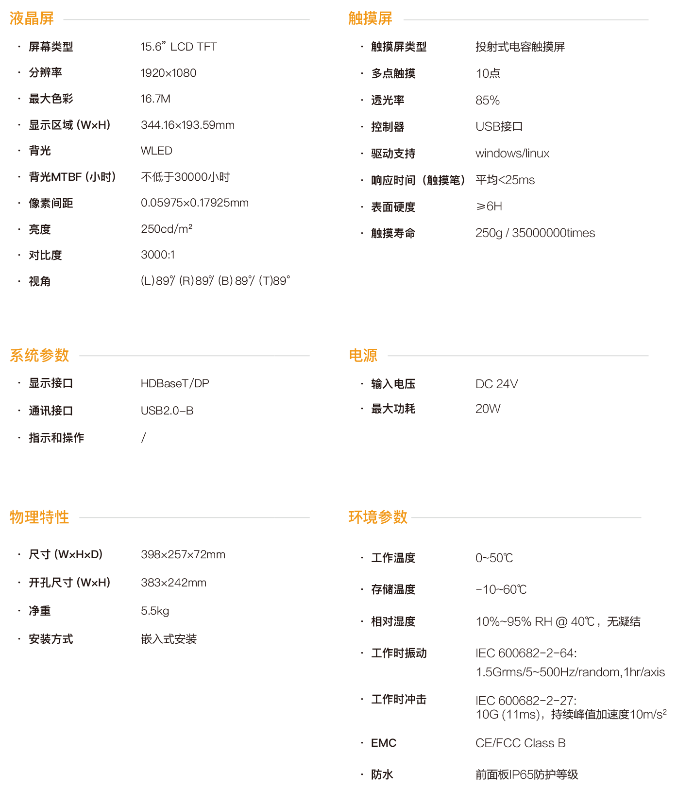 SPD-1500E是一款嵌入式超薄型工業(yè)觸控面板,配備15.6寸分辨率為1920×1080的高清液晶顯示屏、投射式多點(diǎn)電容觸摸屏,支持 HDBaseT和 DP信號(hào)傳輸接口,多個(gè)USB接口擴(kuò)展,PC與觸控面板最遠(yuǎn)通訊距離可達(dá)100米,整機(jī)DC24V供電,前面板IP65防護(hù)等級(jí),接口全部采用緊固設(shè)計(jì),且通過(guò)CE/FCC認(rèn)證,可適用于嚴(yán)苛的人機(jī)交互工業(yè)現(xiàn)場(chǎng)。